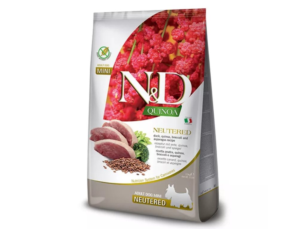 Farmina N&D dog QUINOA (GF) adult mini, neutered, duck, broccoli & asparagus