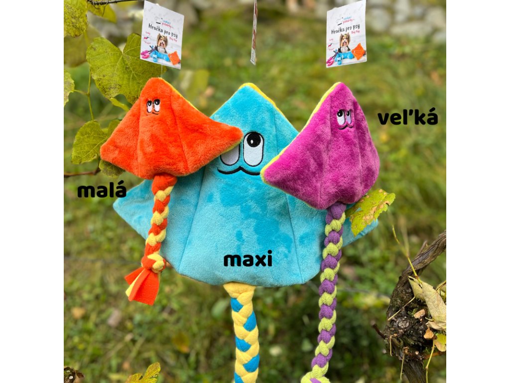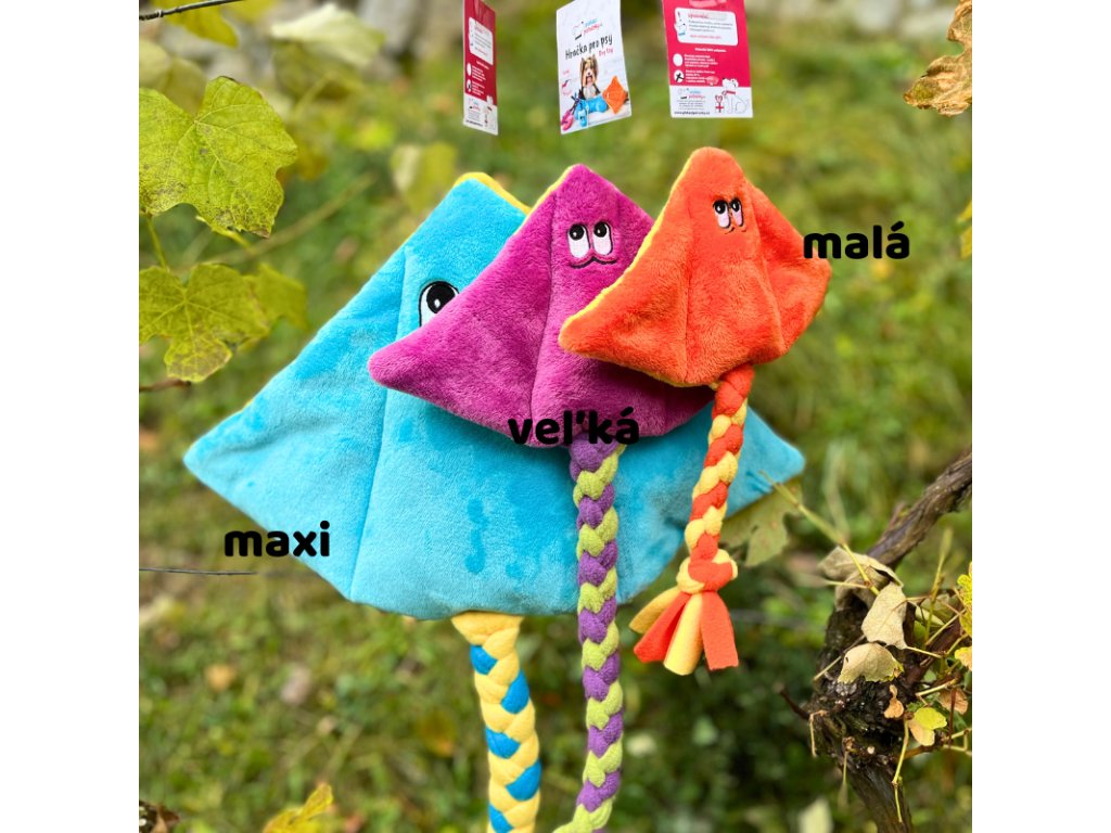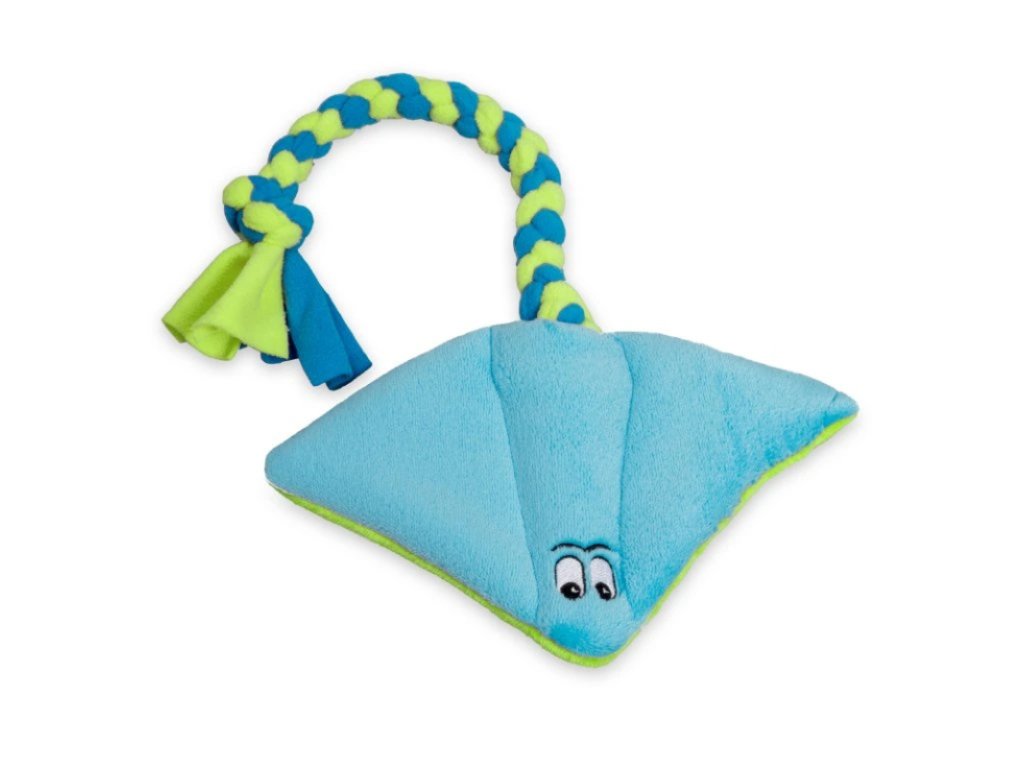 Raja je ušitá z dvoch vrstiev látky. Vnútorná podšívka je pevnejšia a odolnejšia a vrchná časť je z plyšu a mäkká a jemná na dotyk. Táto hračka je navyše ušitá extra odolnou technickou niťou. V vnútri telíčka sa nachádza pískatko, čím zaujme všetkých psíkov. Krídelka raje neobsahujú výplň, takže hračka je pekne poddajná.