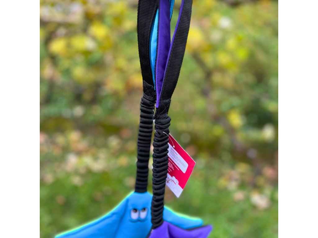 S touto hračkou sa so psom navyše budete môcť hrať veľmi pohodlne, nakoľko obsahuje pohodlnú rukoväť, podšitú softshellom a amortizér, ktorý tlmí každé trhnutie hračky psom.