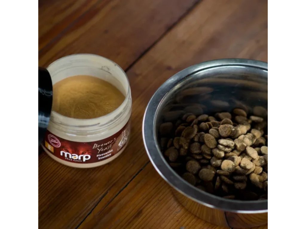 Sušené pivovarské kvasnice Marp sú kvalitný doplnok stravy, ktorý je možné použiť pre psov akéhokoľvek veku. Sú bohatým zdrojom vitamínov skupiny B, minerálnych látok a stopových prvkov. Pomáhajú predovšetkým pri problémoch so zažívaním - pomáhajú vytvárať a udržiavať črevnú mikroflóru a zároveň pomáhajú zvyšovať chuť k jedlu. Priaznivo pôsobia na kvalitu srsti a pomáhajú udržiavať imunitný systém v dobrej kondícii.