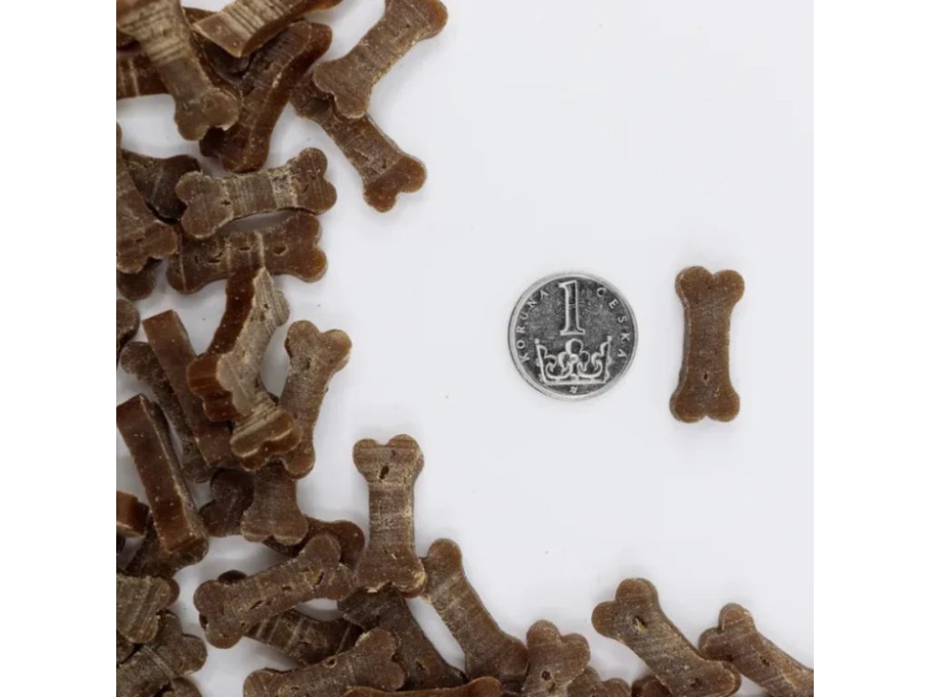 Pamlsky majú tvar malých kostičiek a sú ideálne na tréning všetkých psov. Kostička sa dá ľahko zlomiť a odmeňovať malými kúskami tak viete aj malé psy. Pamlsky sú zabalené v 100% recyklovateľnom obale a majú aj znovu uzatvárateľný zips.