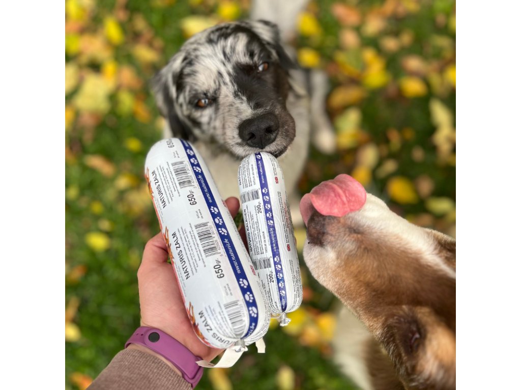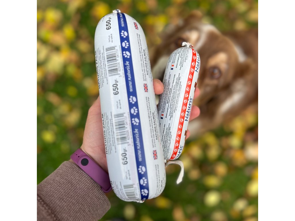 Výcviková trvanlivá saláma je výborným a chutným pamlskom na rôzne typy výcviku a tréningov. Salámka je pevná, ale ľahko sa krája. Jej výhodou je že nemastí vrecká. Môžete ju nosiť vo vreckách, v pamlsovníkoch, alebo plastových dózičkách ( osobne odporúčame dózičky :) )