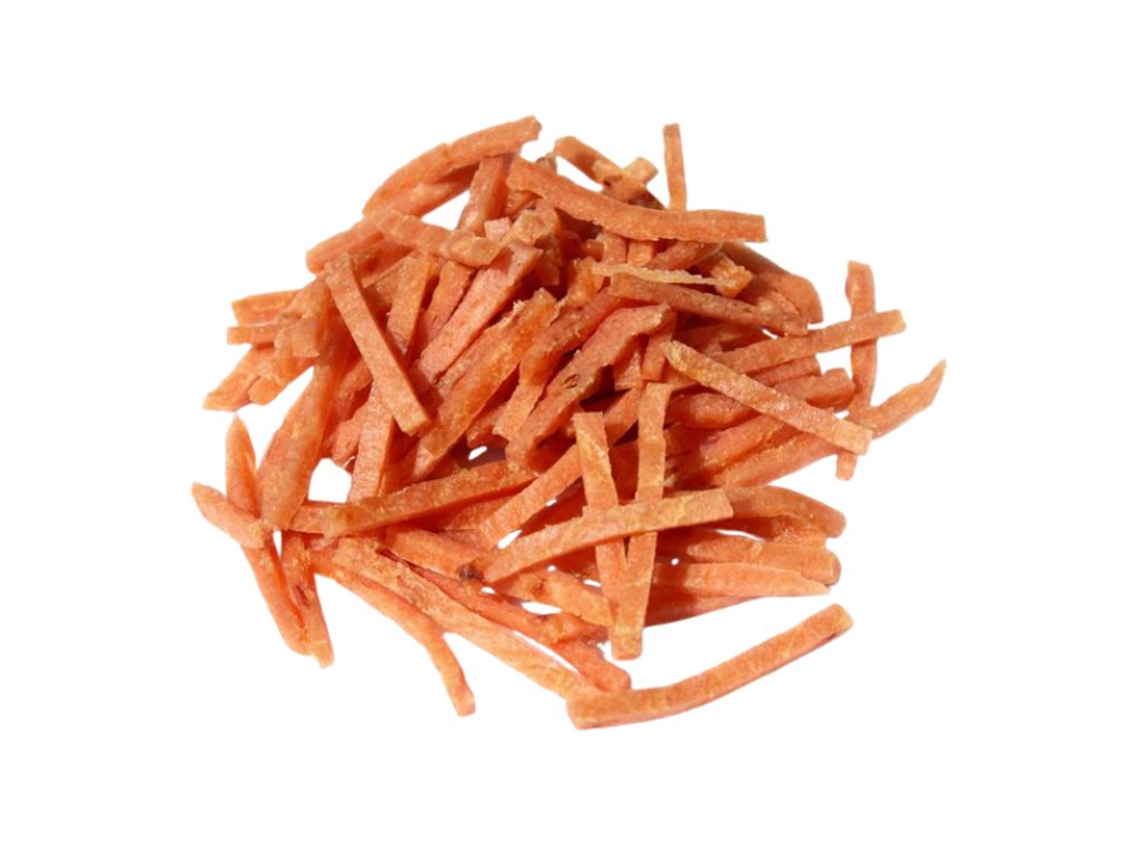 Maškrta - hranolky z lososa - je jemný, mäkký mäsový pamlsok, ktorý je v podobe úzkych prúžkov, ale viete ešte narezať alebo natrhať na ešte menšie kúsky, ak potrebujte odmenu pre malého psa.