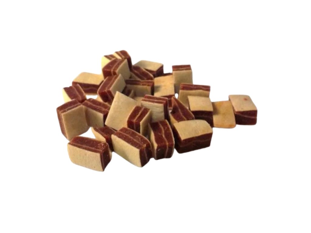 Maškrta - sendvič z kačacieho mäsa a tresky - je jemný, mäkký mäsový pamlsok, ktorý je v podobe menších kociek, alebo kúskov, ktoré sú dostatočné malé na to, aby ste ich okamžite vedeli použiť ako tréningovú odmenu. Pamlsky majú veľkosť, ktorá je ideálna cca pre menšie až stredné psy, ale samozrejme nimi nepohrdne žiaden pes. Kúsky sú mäkké, takže aj keby ich pes mal potrebu ešte požuť, tak to nebude trvať dlho. Balenie je praktické, znovu uzatvárateľné, takže môžete spotrebovať pamlskov koľko práve potrebujete a zvyšok uzavrieť v pôvodnom obale a odložiť na ďalší tréning.