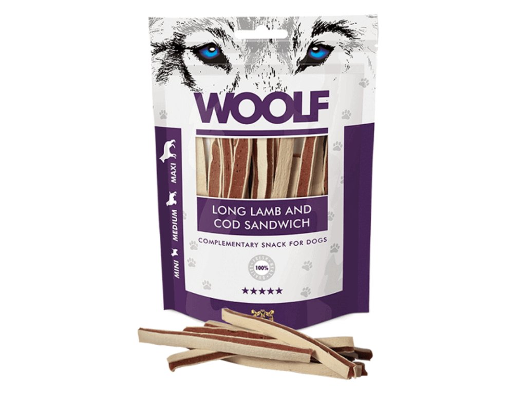 Pamlsok Woolf Dog Lamb & Codfish Soft Sandwich LONG 100 g
