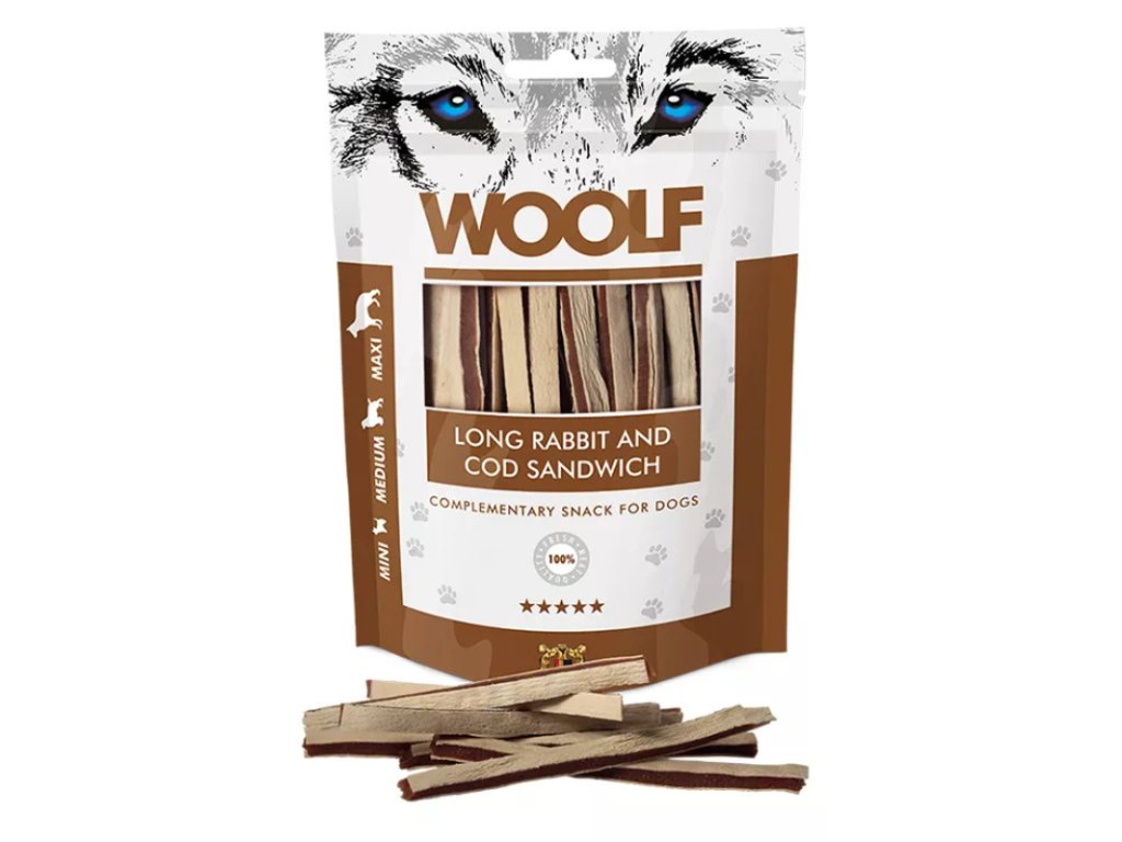 Pamlsok Woolf Dog Soft Rabbit and Pollock Sandwich LONG 100g